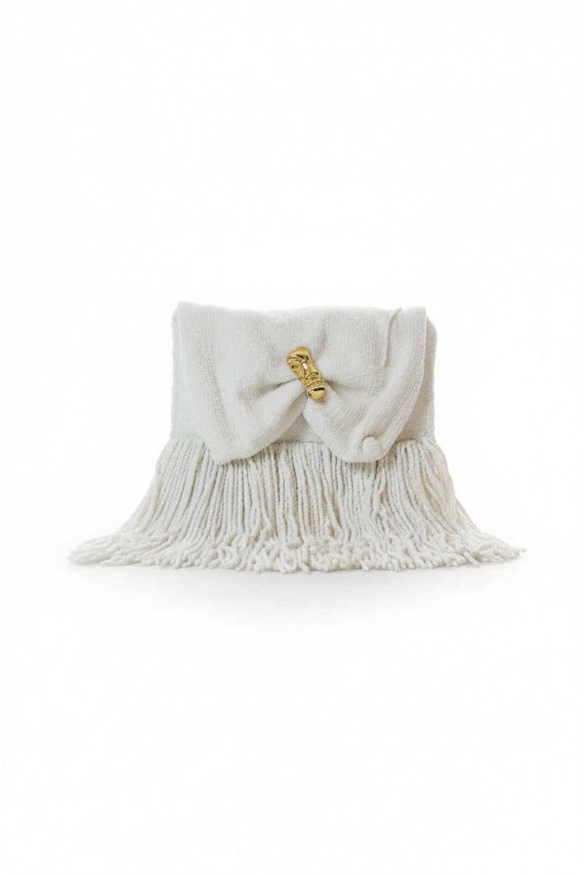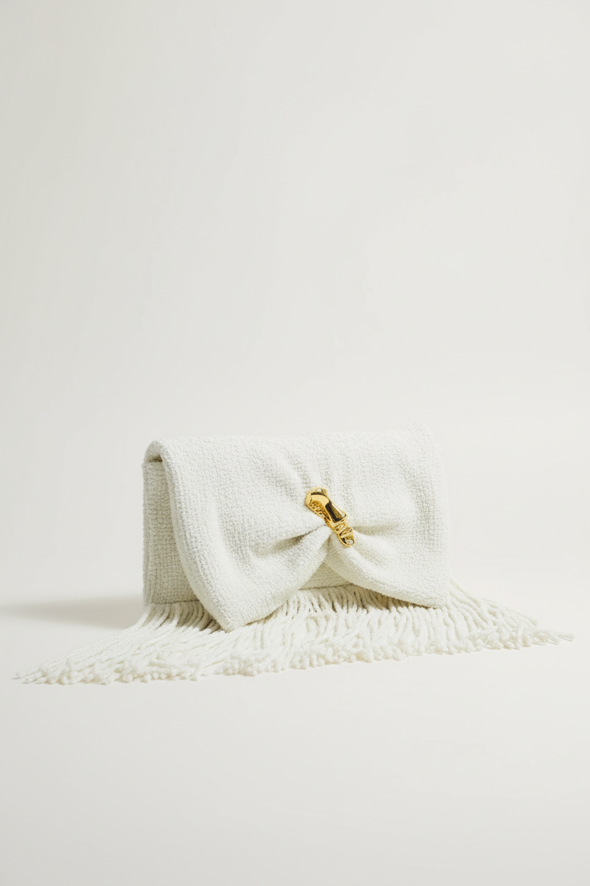 La DIALI pochette incarne l'élégance contemporaine avec une touche d'audace. Confectionné dans un tissu doux qui offre une texture luxueuse au toucher, il se distingue par ses longues franges fluides qui apportent mouvement et caractère à chaque pas.